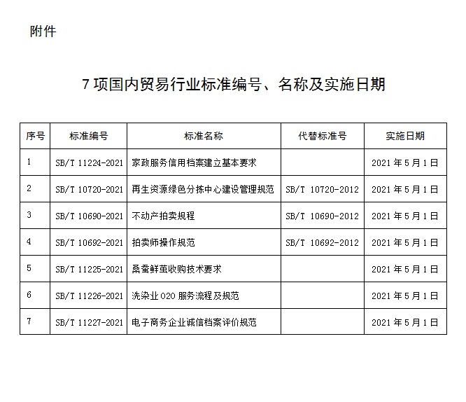附件:7项国内贸易行业标准编号、名称及实施日期